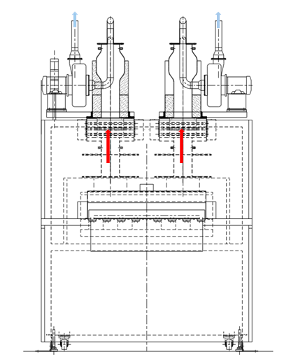 本装置は、乾燥炉・焼成炉から排出される排ガスを、内蔵された触媒を通して二酸化炭素(CO₂)と水(H₂O)に分解し、環境負荷を低減する排気処理ユニットです。